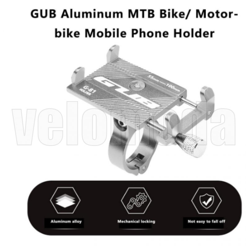Держатель для телефона GUB G-81 - самый компактный и легкий из всех моделей. Целиком изготовлен из алюминия, комплект пластиковых проставок для различных рулей и силиконовые прокладки в местах соприкосновения с телефоном. Держатель можно устанавливать на хомуте как вертикально, так и горизонтально. Полный комплект для установки.