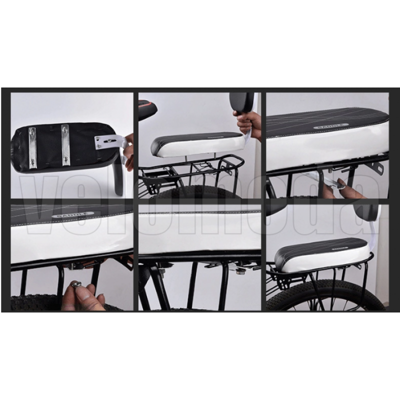 Детское кресло D2568 для велосипеда устанавливается на багажник, фиксируется металлическими пластинами. Мягкая подкладка и удобная ручка для крепления на подседельный штырь.