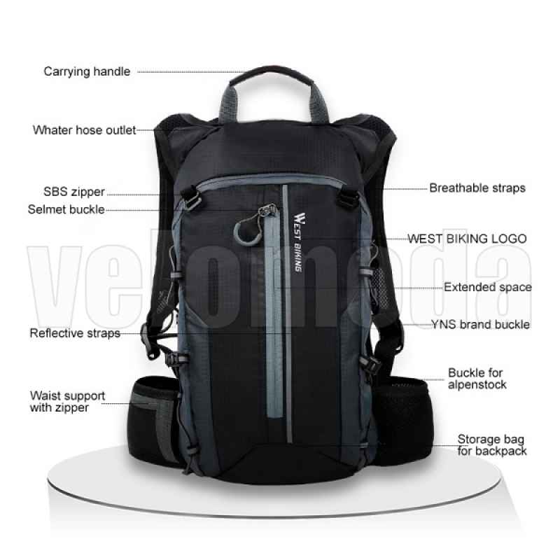 Спортивный велорюкзак WEST BIKING 651712D 10L изготовлен из высокопрочного и
