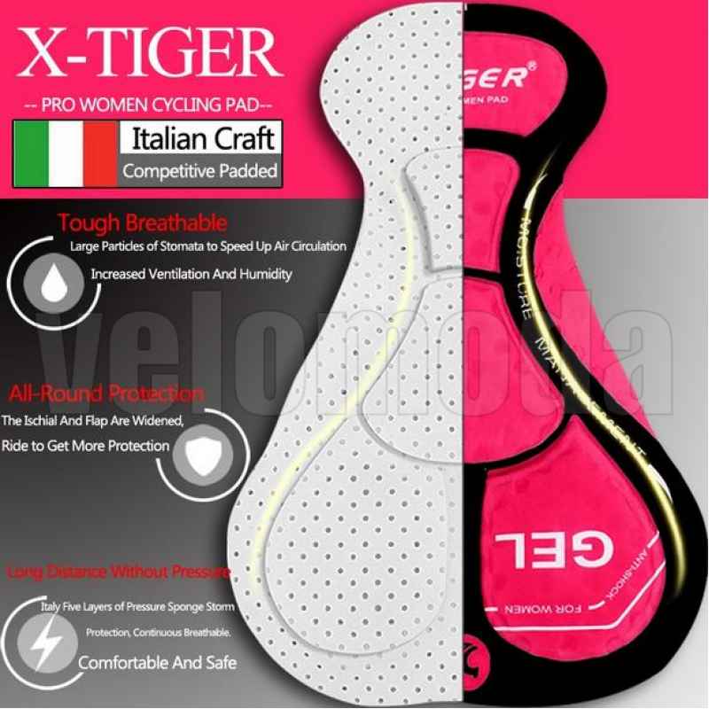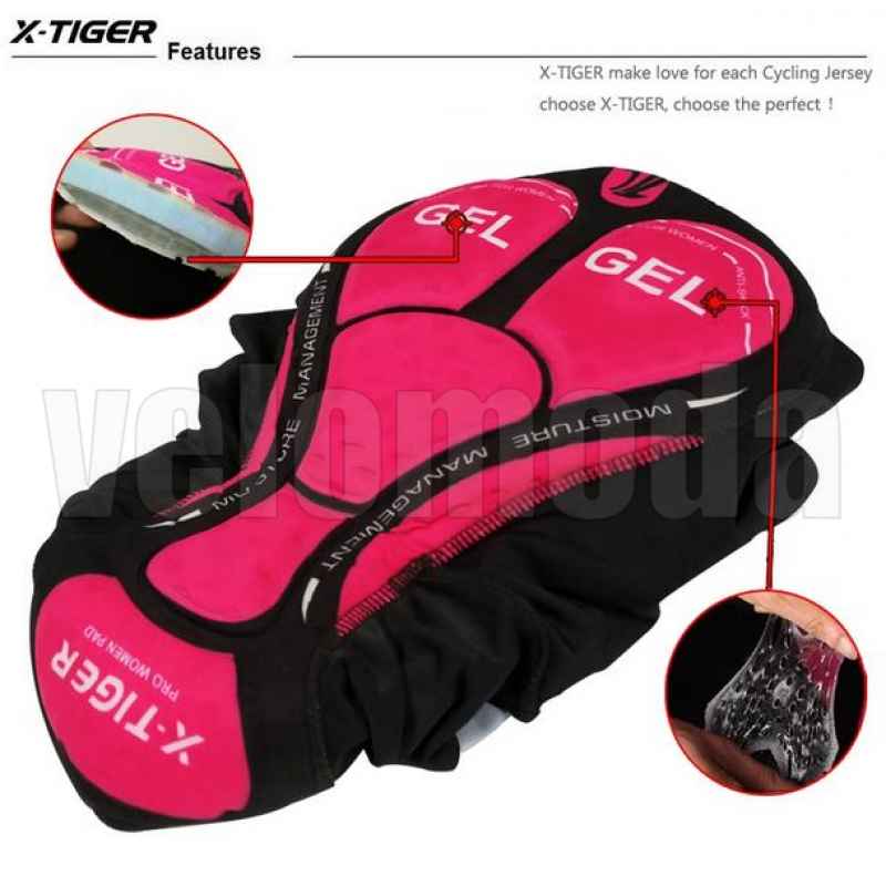 Велоштаны с гелевым памперсом женские X-Tiger CK-001 - порадуют Вас комфортом, высоким качеством изготовления и используемых материалов. Состав: 80% полиэстер и 20% спандекс. 4-x зонный силиконовый памперс разработан в Италии с учетом женской физиологии. Мягкая и упругая резинка надежно фиксирует штаны на талии и не создает излишнего давления. Силиконовая вставка по контуру нижней части штанины надежно фиксируется на ноге и препятствует задиранию.