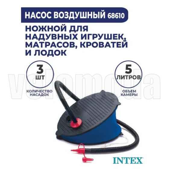 Модель: Насос ножной INTEX 68610, 3 насадки