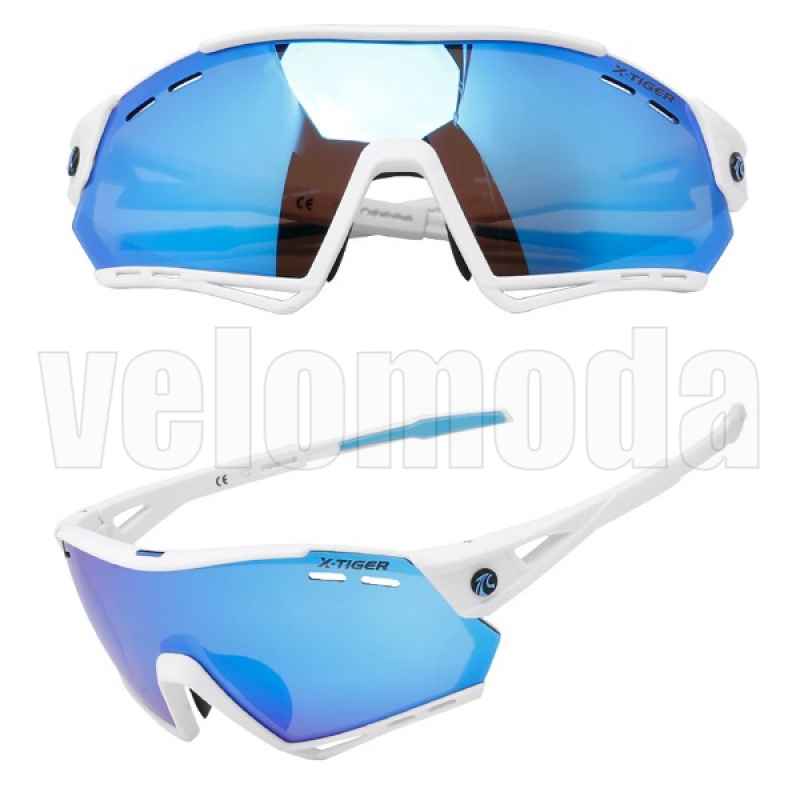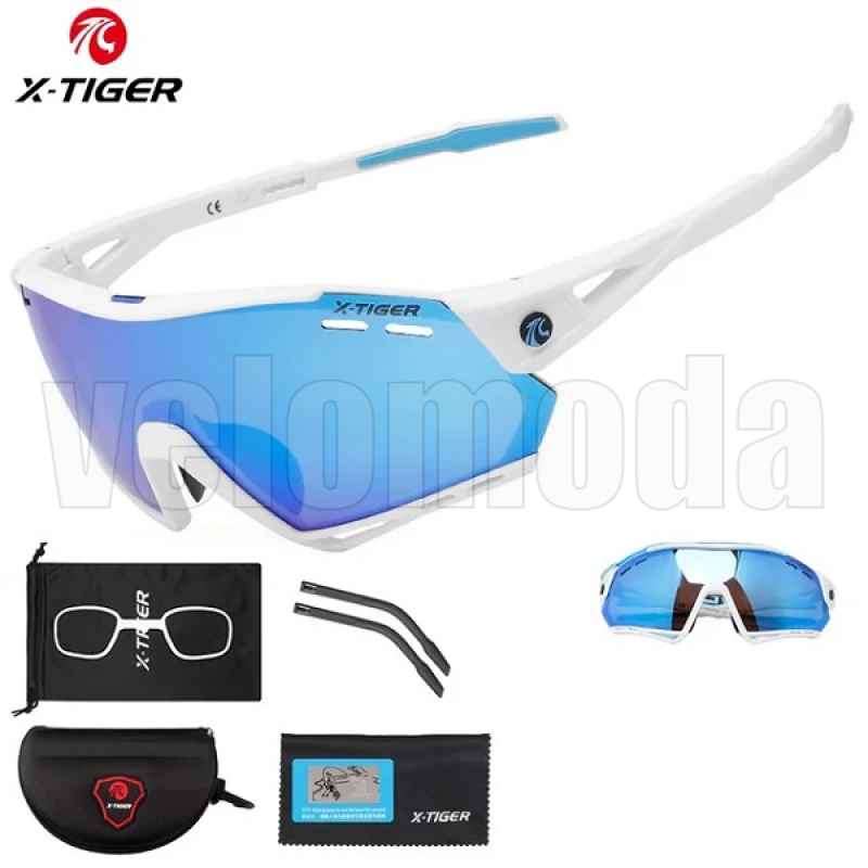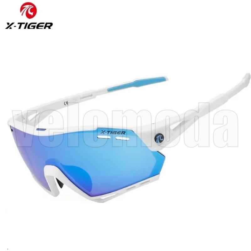 Очки велосипедные X-TIGER EXS-5-3, 3 линзы + фотохром (Бело-голубые)