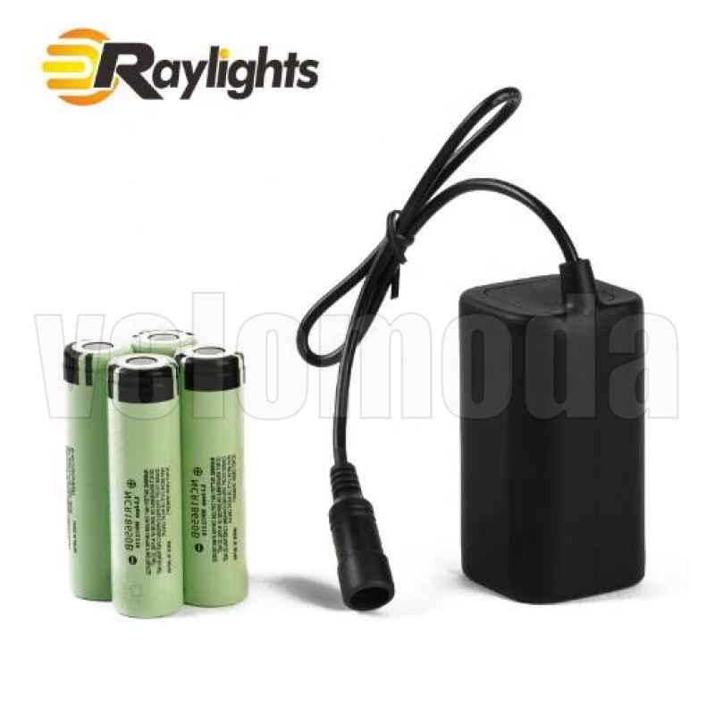 Сменный аккумуляторный блок 4x18650R 6400mAh, 8.4V в силиконовом чехле для водонепроницаемости и в сумке с креплениями на липучках Velcro.