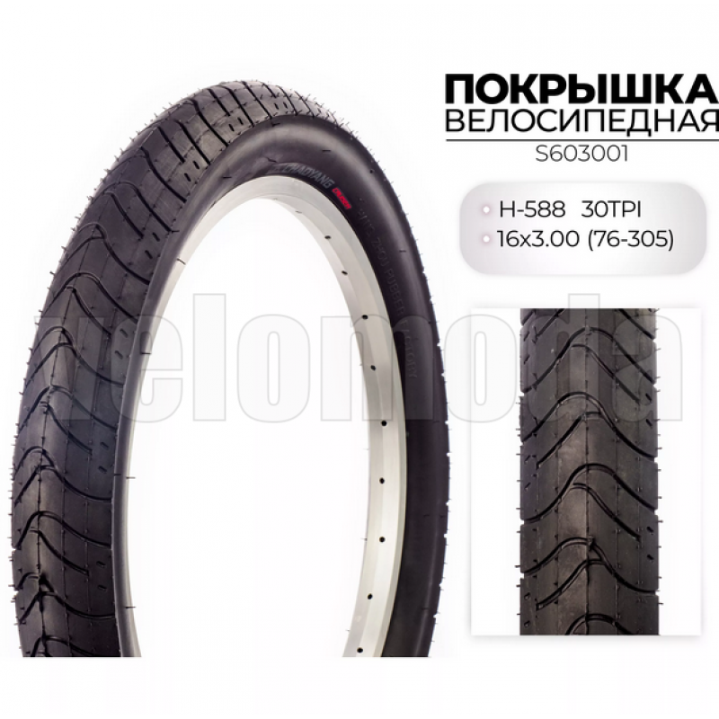 Покрышка велосипедная 16*3,0 (76-305) H-588