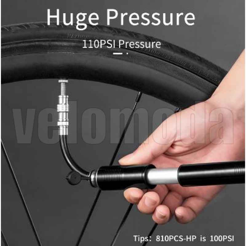 Велосипедный насос Rockbros 806 Mini Pump - целиком изготовлен из металла. Абсолютный рекордсмен по компактности при длине всего 155 мм. Выдвижной резиновый шланг позволяет удобно расположить насос при накачивании. Подходит для ниппелей Presta и Shradder - достаточно просто перекрутить переходник другой стороной. Удобное крепление в комплекте для одновременной фиксации насоса и бутылки.
