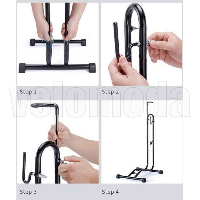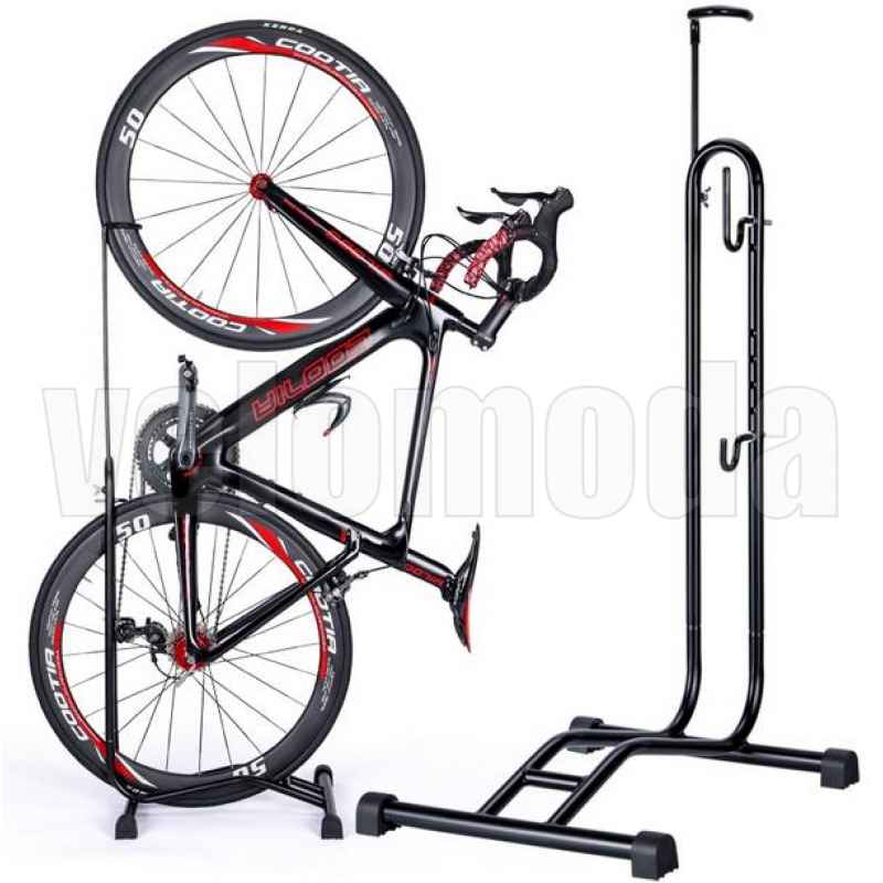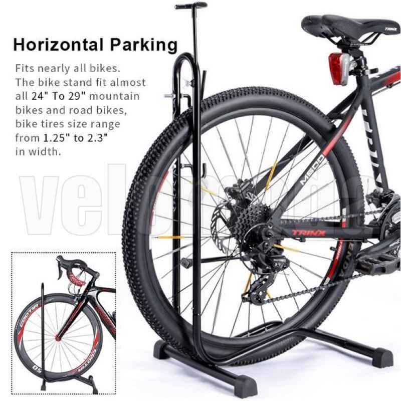зафиксировать велосипед неподвижно как горизонтально, так и вертикально. Вертикальное хранение только для велосипедов с колесами до 26 дюймов. Горизонтальная парковка для велосипедов с колесами от 24 до 29 дюймов и шириной от 1.25 до 2.3 дюймов. Специальный крючок для хранения шлема. Простая сборка, удобное хранение и обслуживание велосипеда, маленький вес конструкции в 2100 грамм. Внимание, возможны сколы лакокрасочного покрытия!