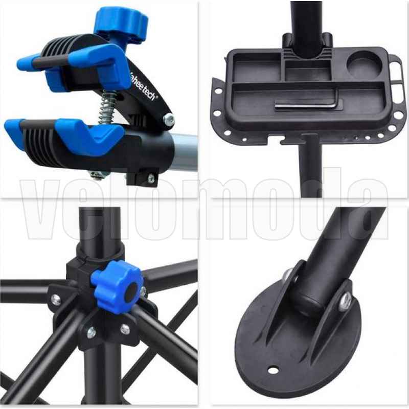 4. Устойчивый стенд: на стенде есть держатель переднего колеса с телескопической ручкой, который фиксирует руль велосипеда во время ремонта переднего колеса.