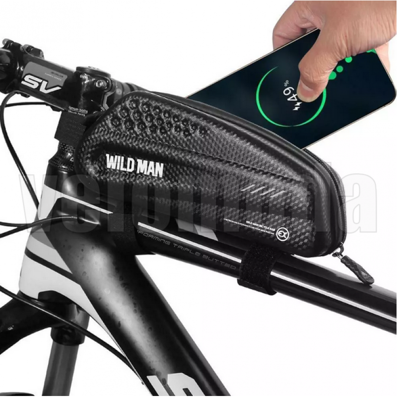 Велосумка на раму Wild Man водонепроницаемая 1L - крепится на верхнюю трубу рамы.