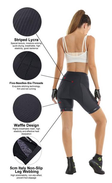 Велошорты с гелевым памперсом женские X-Tiger DK-34501 - порадуют Вас комфортом, высоким качеством изготовления и используемых материалов. Состав: 80% нейлон и 20% спандекс. Профессиональный многослойный памперс для шоссейного велоспорта разработан в Италии, с учетом женской физиологии. Мягкая и упругая резинка надежно фиксирует шорты на талии и не создает излишнего давления. Два боковых кармашка для мелочевки. Силиконовая вставка по контуру нижней части штанины надежно фиксируется на ноге и препятствует задиранию.