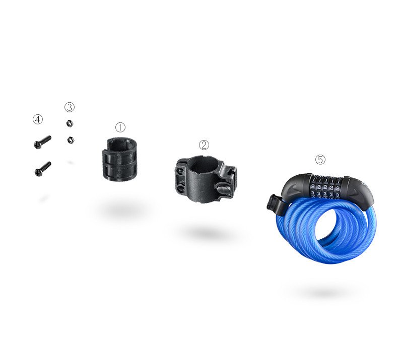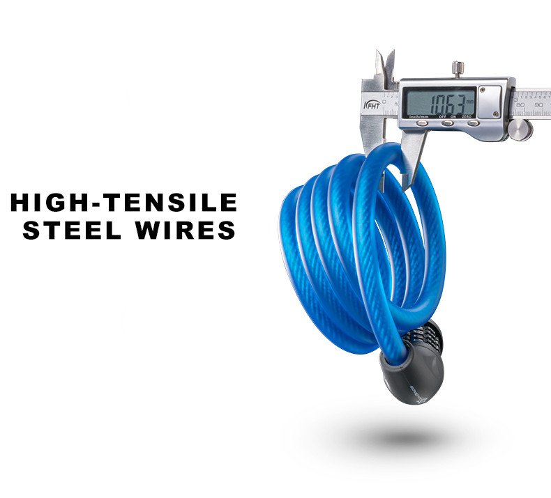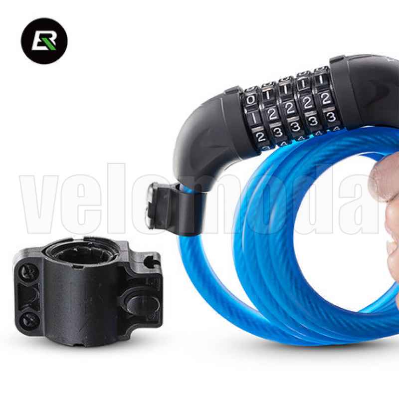 Велозамок Rockbros L50115 тросовый, кодовый с креплением (синий)