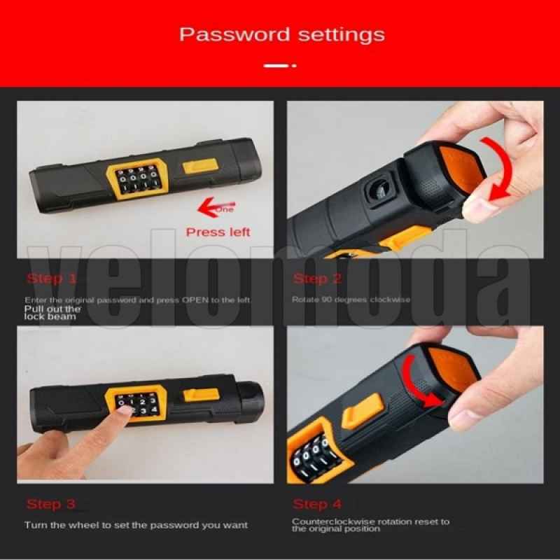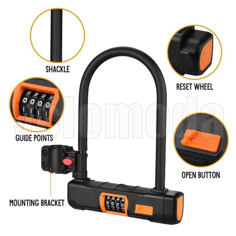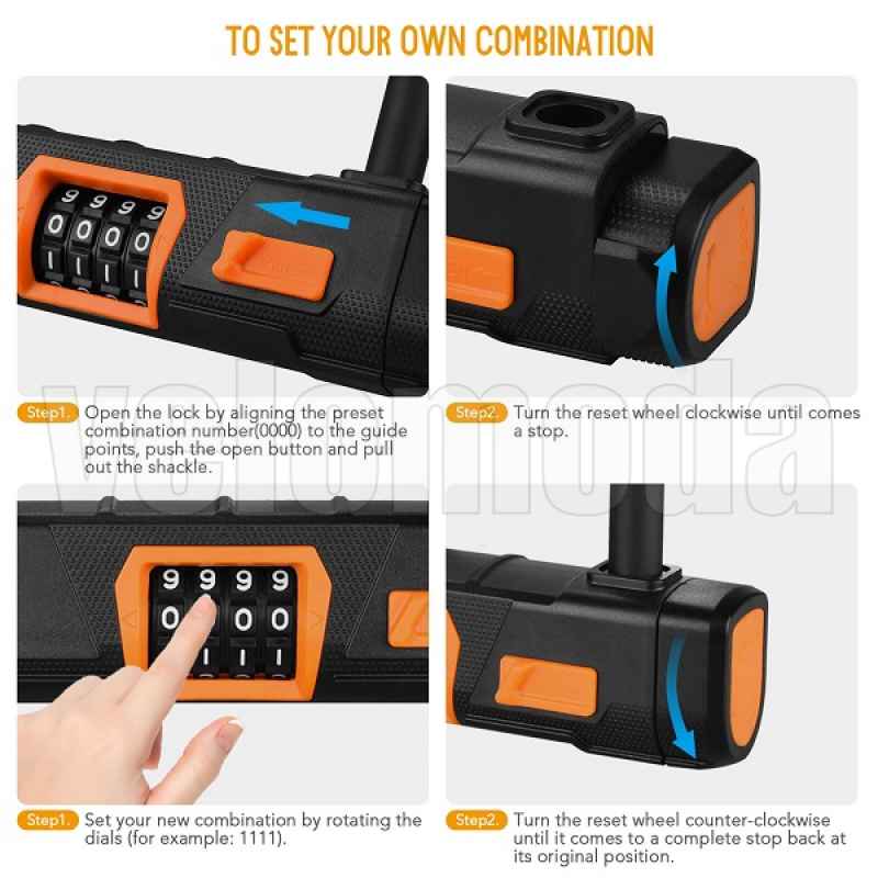 Замок-скоба Combo U-Lock, кодовый, 200*130 мм (Черный-оранжевый)