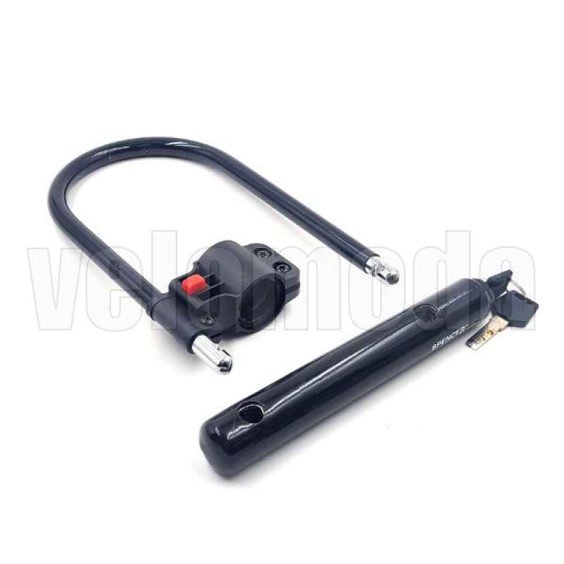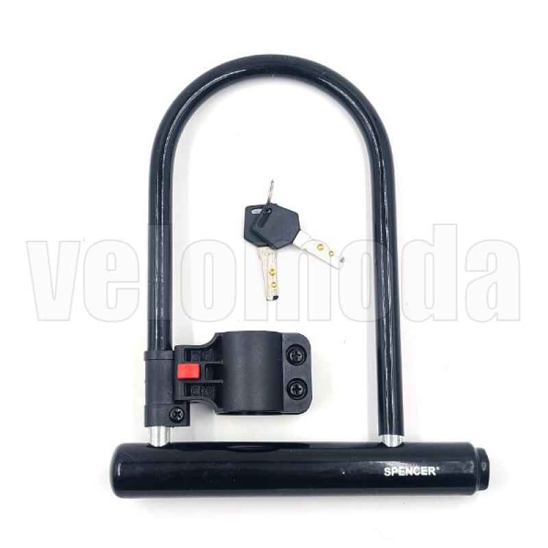 Замок-скоба U-Lock Spencer ZS2704 - изготовлен из высокопрочной закаленной стали. Корпус обрезинен, чтобы не поцарапать ЛКП рамы. Полезный обхват 165*250 мм.