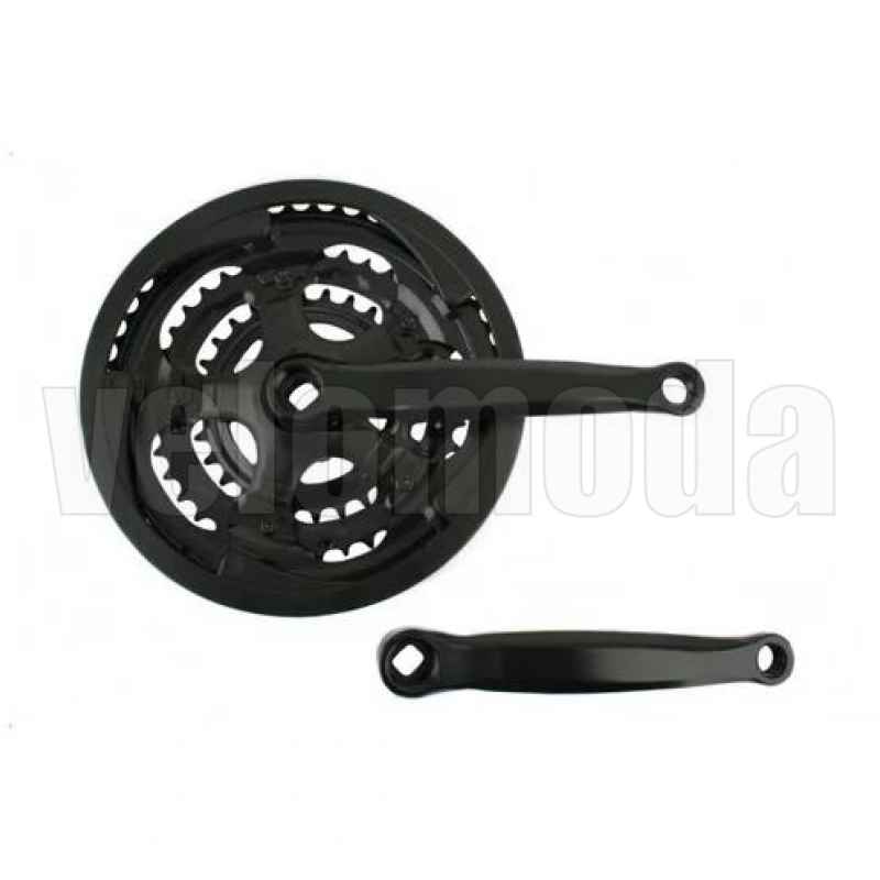 Система шатунов Saiguan DC-304DI, диапазон количества зубьев звезд 48/38/28, длина шатуна 170 мм, крепление под квадрат, система идет с защитой. Цвет черный.